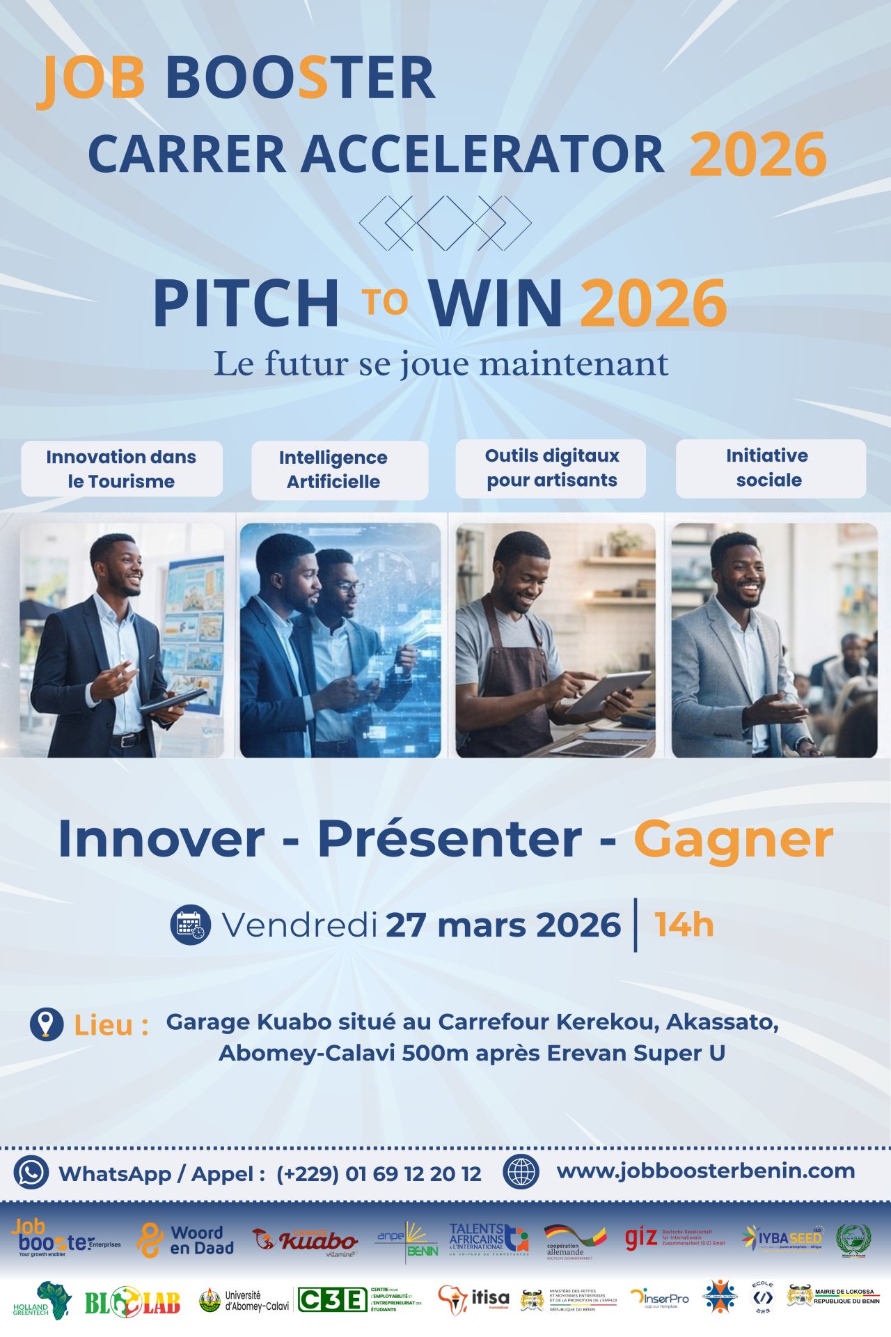 Job Booster Social Enterprise Benin (JBSE-Bénin) est une Société à Responsabilité Limitée (SARL), filiale de JOB BOOSTER NEDERLAND BV qui est une initiative de la Fondation Néérlandaise Woord en Daad basée aux Pays-Bas. En tant qu’organisation chrétienne, Woord en Daad relie les gens du monde entier dans leurs efforts pour vaincre la pauvreté et réaliser une existence digne pour chaque individu. Dans les pays bénéficiaires de son Programme dénommé ‘’Job Booster’’, Woord en Daad gère simultanément des projets d’emploi et de formation qui améliorent l’environnement propice pour l’emploi décent par le renforcement des institutions d’Enseignement et de Formation Technique et Professionnelle (EFTP), le plaidoyer et des projets supplémentaires pour inclure les groupes…